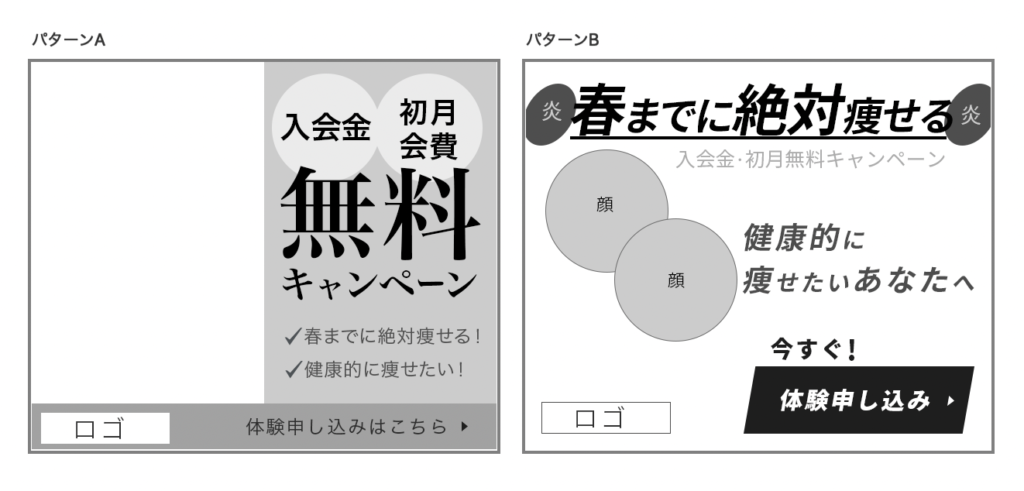 バナーでは、純粋に1番言いたいことを大きく見せるのが大切です。また、今回はどちらもテキスト情報の1つを1番言いたいことに挙げました。なので、写真も印象づけ程度に抑えることを意識します。